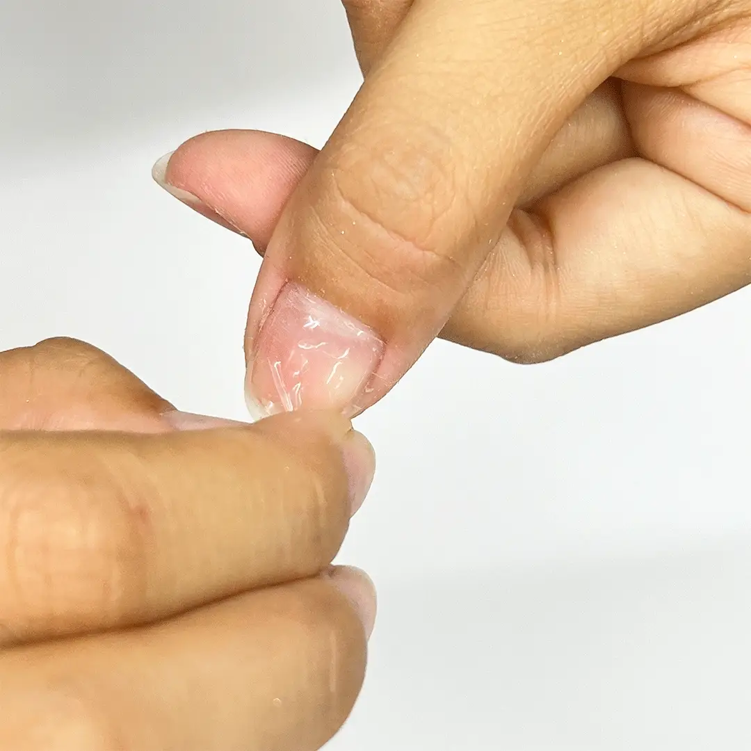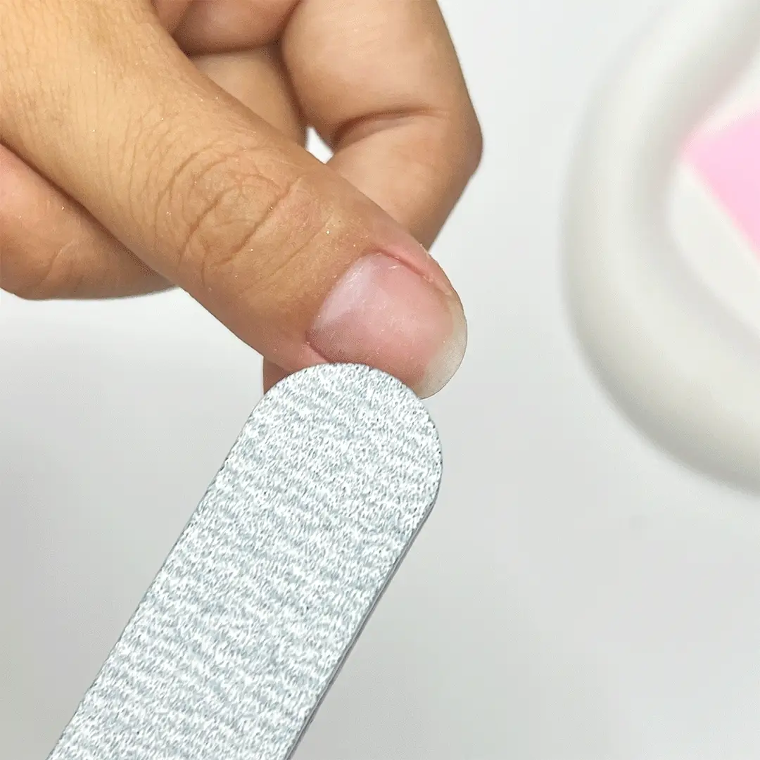 File your nails, ensuring the entire nail bed is filed to create a rough surface. This step is crucial for helping your nails stay on longer.