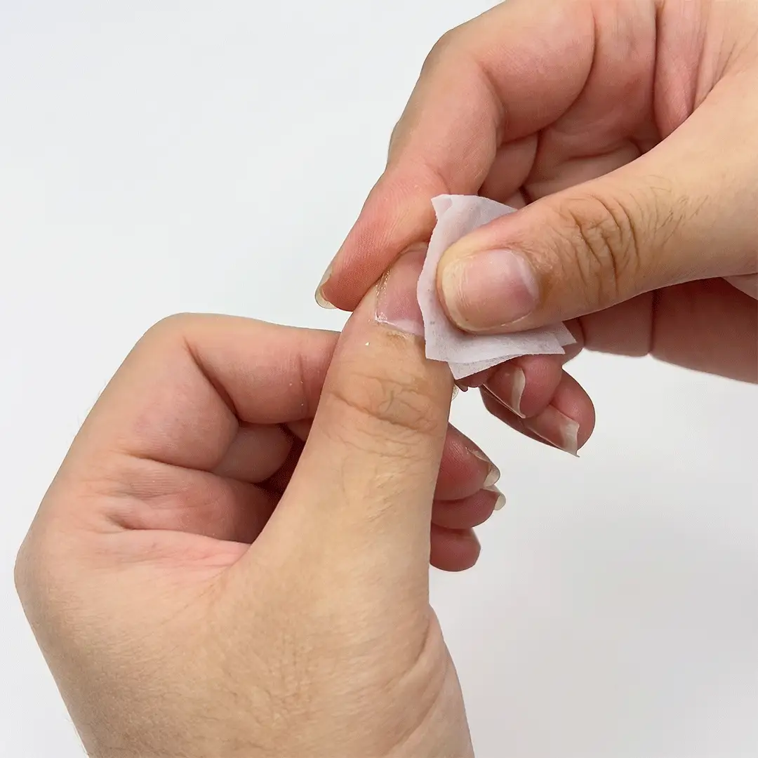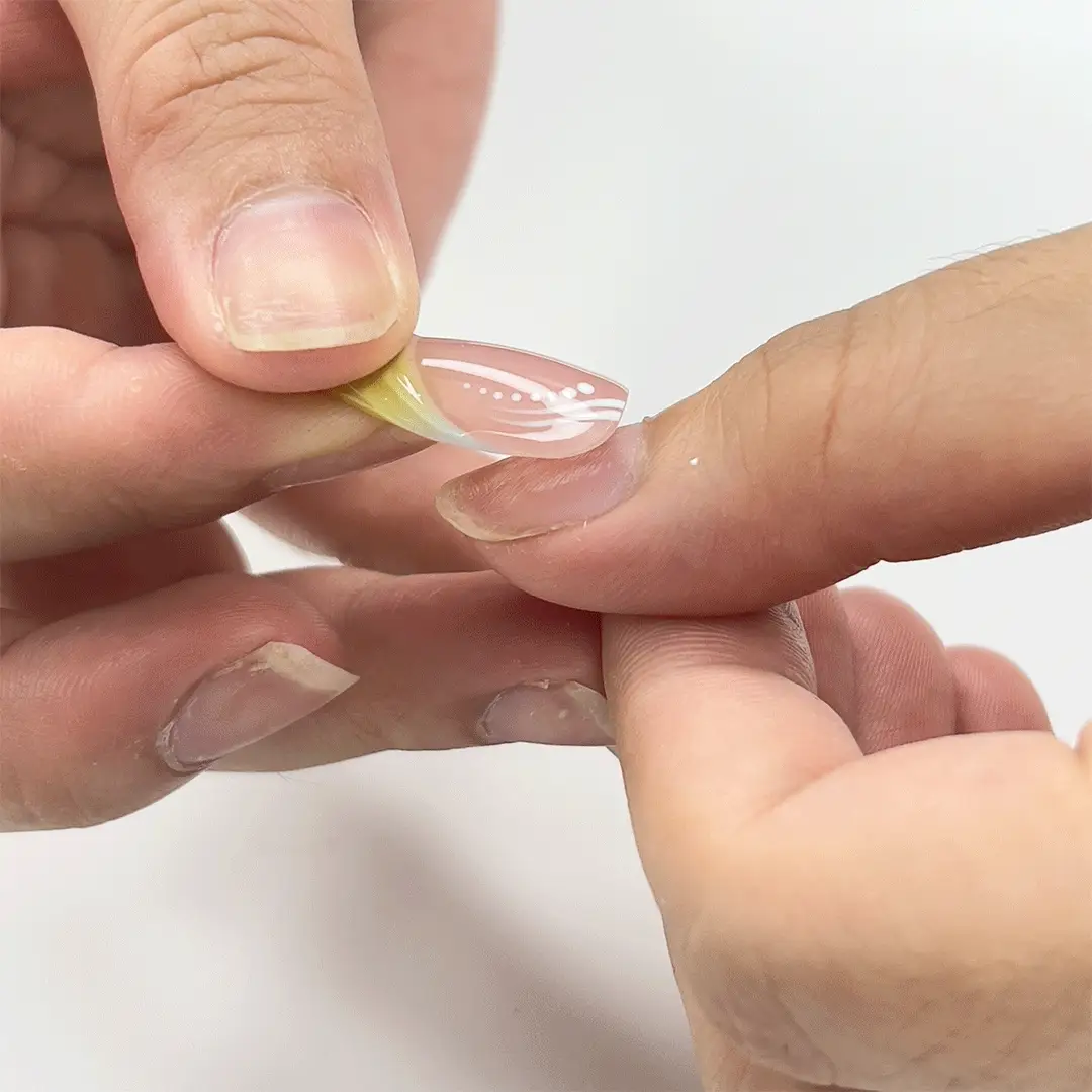 If you used adhesive tabs, gently remove them and store your nails in the provided box for your next wear.