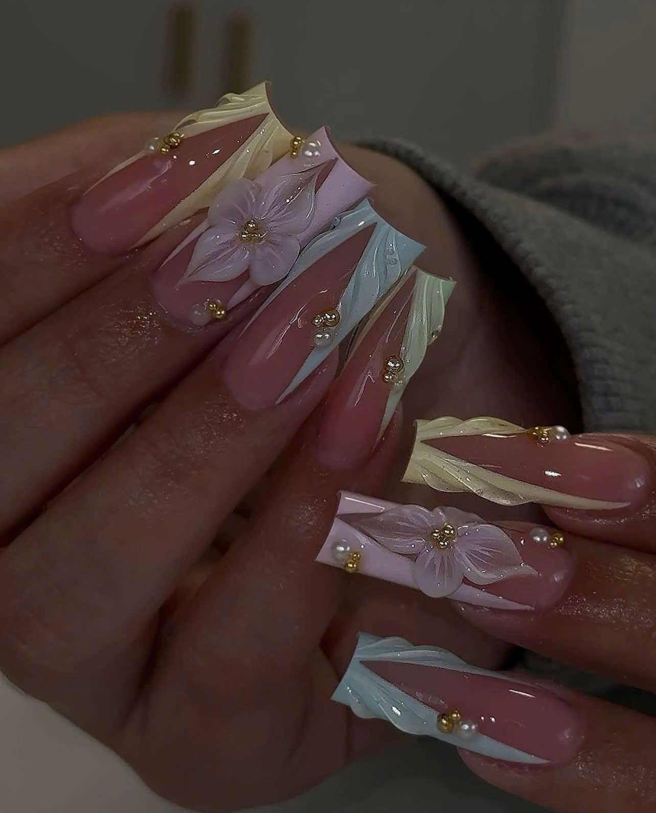Our Team of nail technicians meticulously crafts each nail art design, with every detail patiently executed step by step.